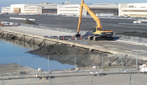 » Seaplane Lagoon dredging project. Dredged soil is spread out on lined drainage area with water capture drain. 2011. Soil was contaminated from sewer outfalls. (Navy photo)